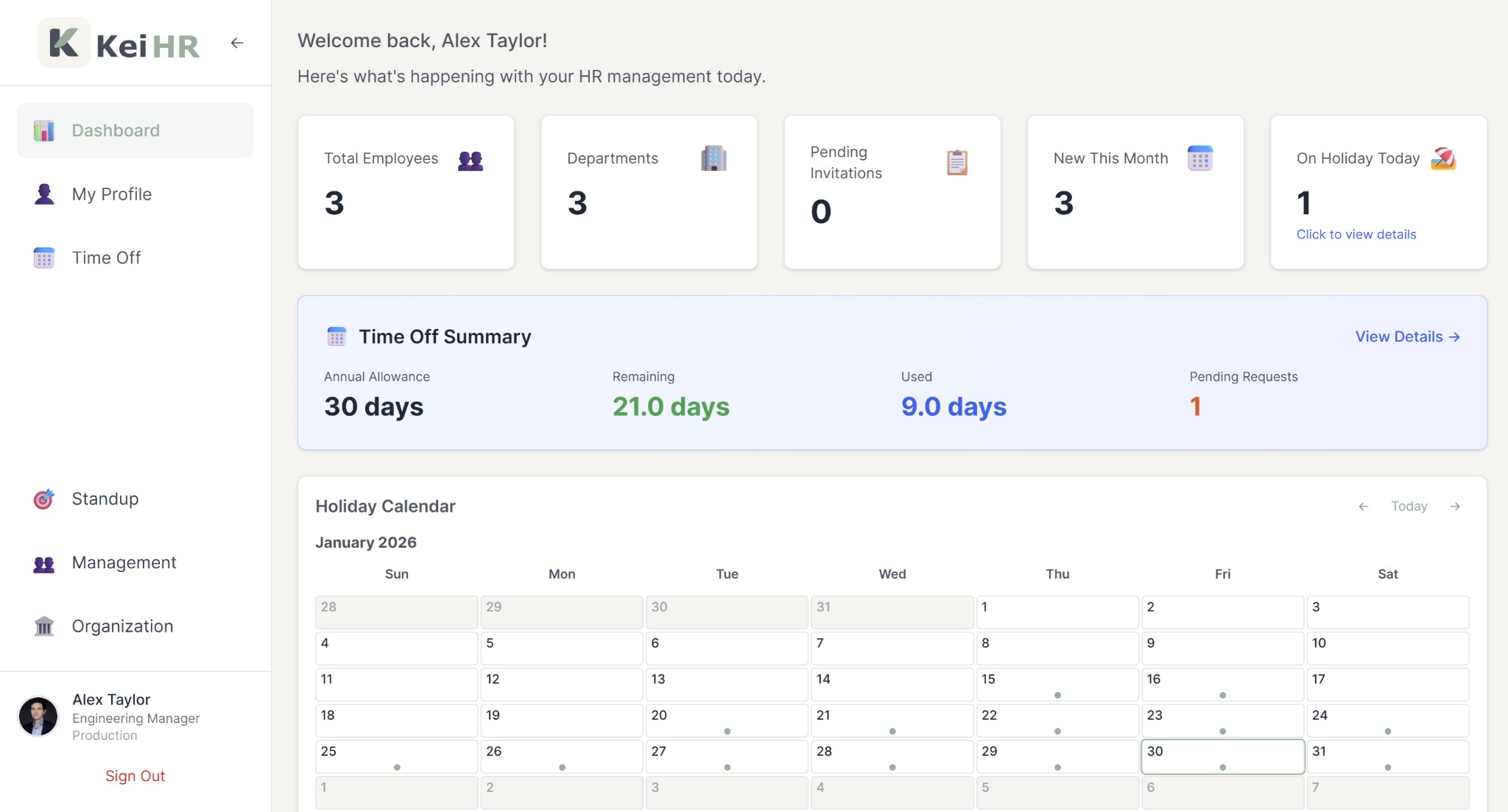 Kei HR was designed from the ground up for teams who value simplicity, transparency, and getting things done.